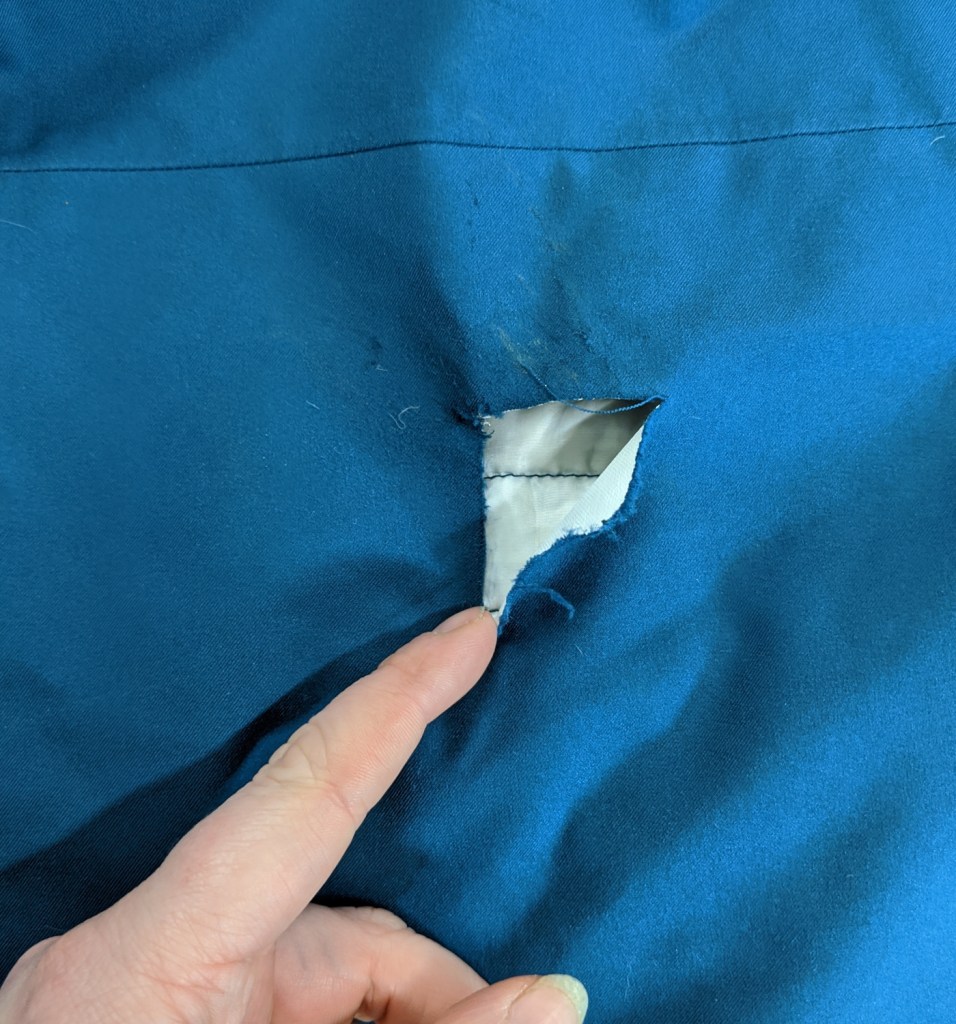 Waterproof garments and rugs are repaired with durable, weatherproof thread, heat sealed, taped seams to ensure a watertight and leak proof repair.